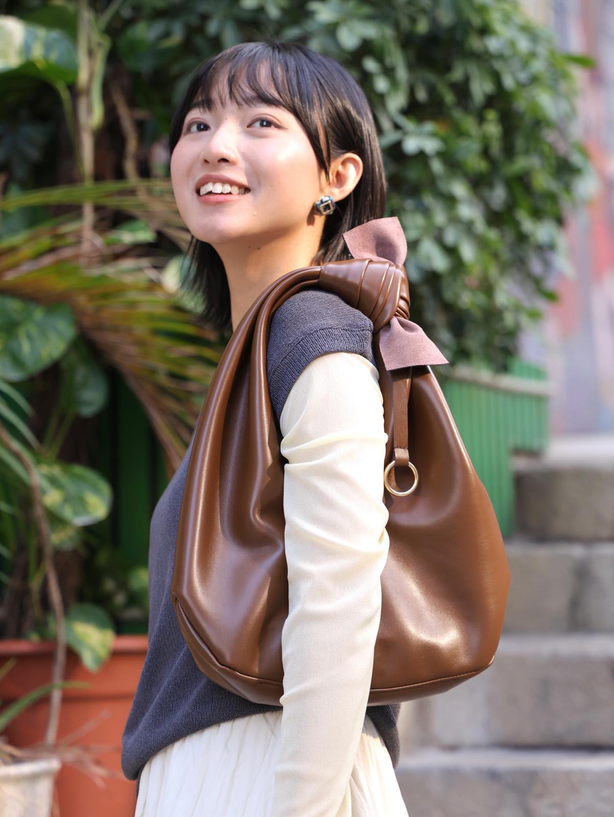 Boey 軟皮手挽/上肩袋 朱古力啡