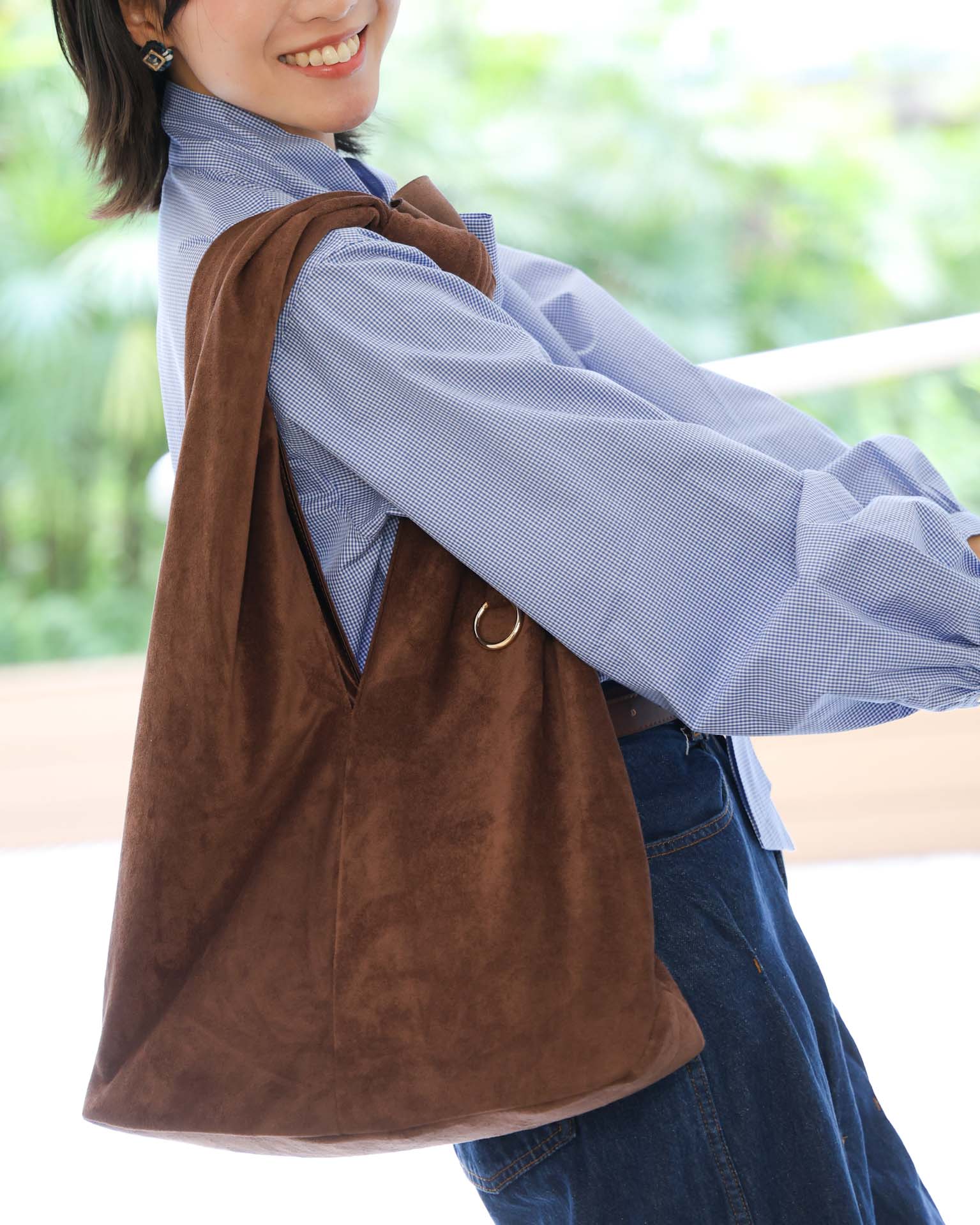 Bella 猄絨布 手挽/上肩袋 朱古力啡